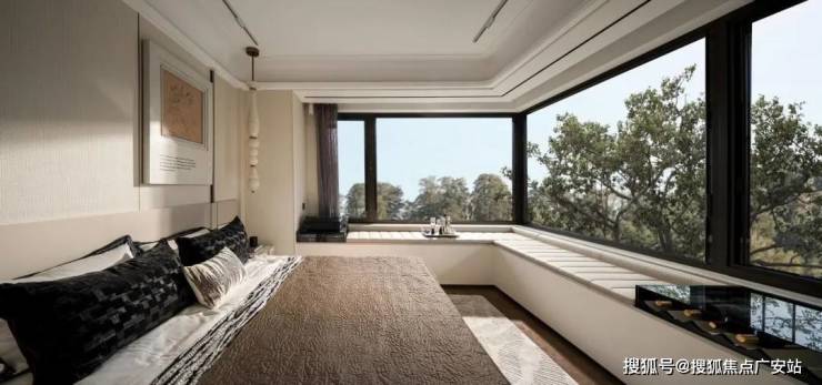 项目大量使用奢石设计,客厅四边弧形天花、主卧树叶拼花地板、精致优雅的骨骼线设计,都是开发商花费更大成本和耗材去呈现更美的视觉体验。