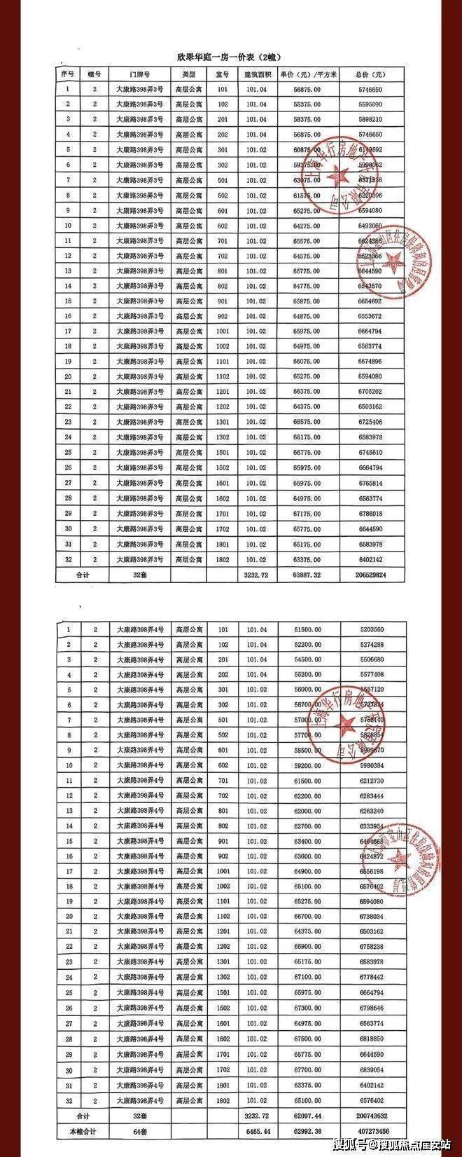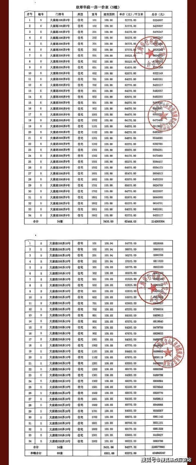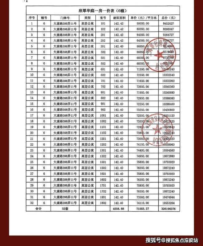 一房一价表