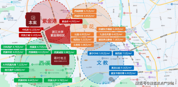 2.高潜板块——前有3.5公里蒋村8.8W/㎡地王,7W+近邻中杭府,土地潜在红利巨大