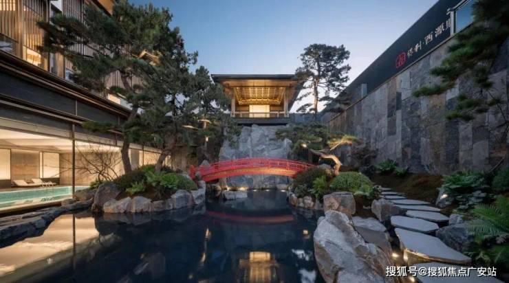 5.取意三大宋画,融合杭州山水精粹,园林布局「一轴八境」展开,通过假山、叠水、屏风等元素,串联起移步易景的园林场景,再现刘松年的《四景山水图》。