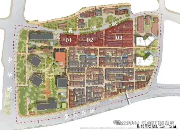 方案中规划的昼锦路目前还未东延至此,未来建成后,项目内将开辟昼锦路和方浜中路之间的公共绿地以及城市开放空间,着力打造成富有海派文化底蕴的历史风貌保护和城市更新经典片区。