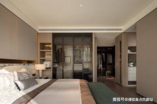 在细节上同样不遗余力。比如入户后的玄关柜是交付标准,打开厨房柜体、镜柜等各类收纳空间时均有惊喜;再如客厅和主卧均采用弧形吊顶,还有风暖浴霸、玄关顶面感应灯等细节,都透露出项目对品质生活的追求。