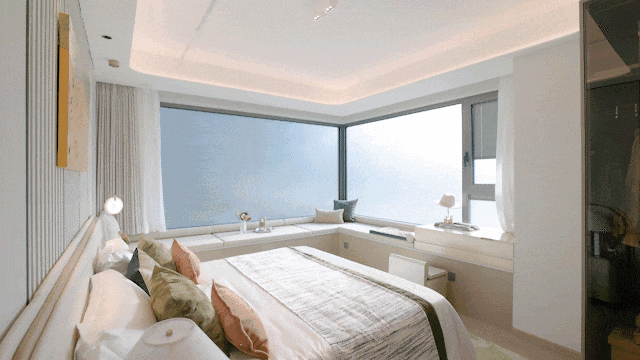 当走进主卧空间,更是惊喜满满。拥有一个270度的转角飘窗,采光非常优异!