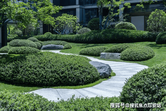 果岭式立体园林:LINE+景观设计,ZUI高约1.5m自然高差堆坡造景,“九曲映翠”曲线洄游动线串联九大功能场域