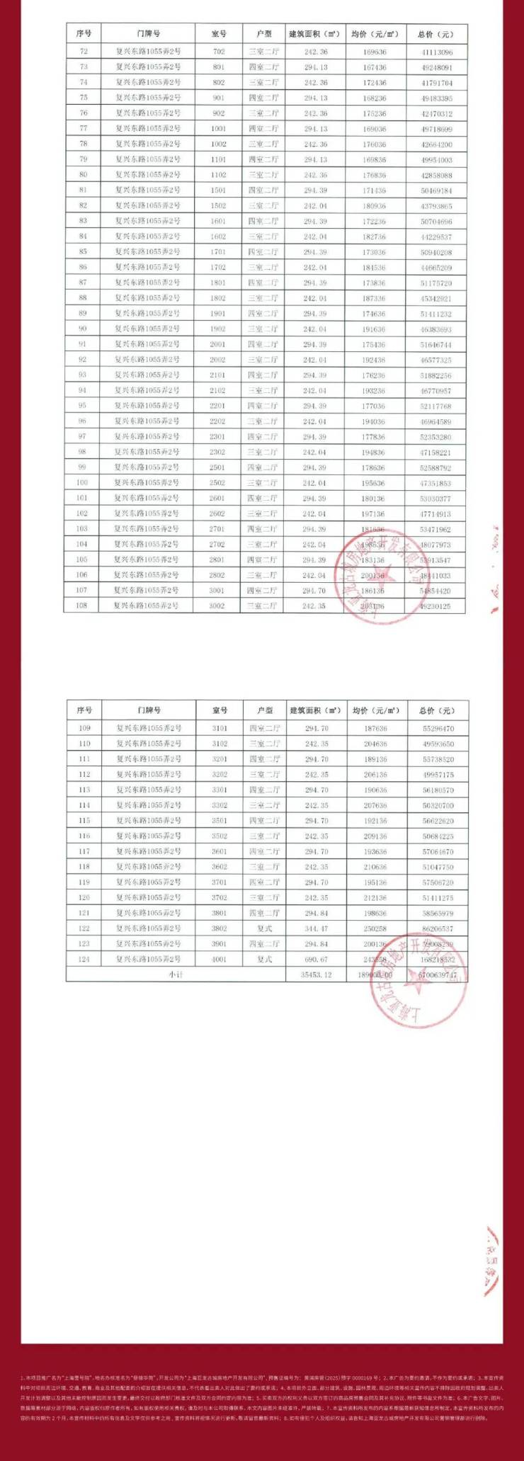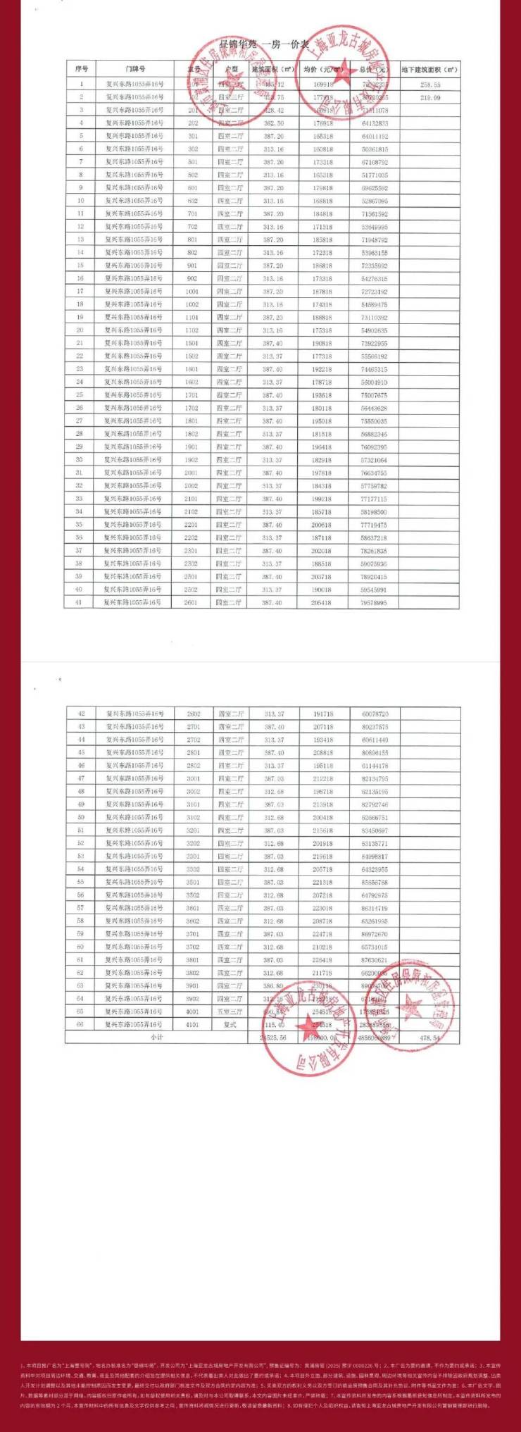 一批次:推出6号楼33套房源,均价约17万/㎡,面积约267-909㎡,开盘售罄