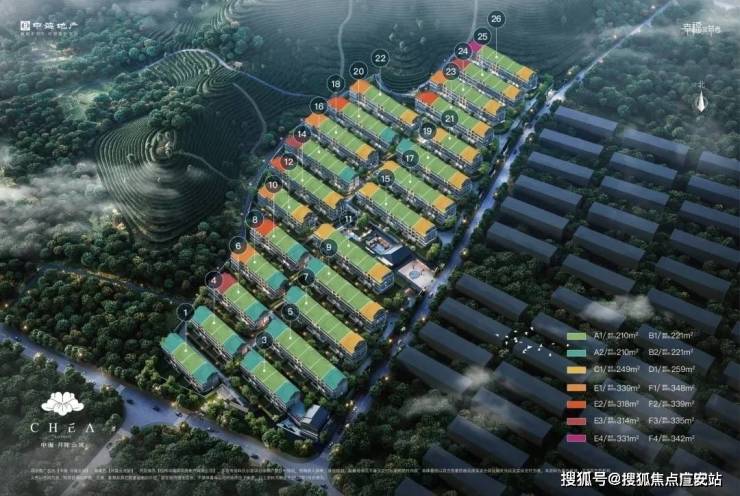 西侧北侧茶山环抱推窗见景,东侧远景亦是茶山景观无建筑遮挡,满目翠绿的茶园推窗尽收眼底