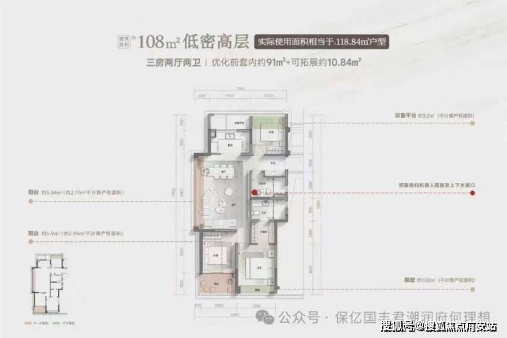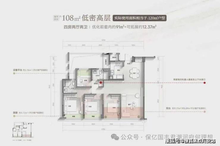108㎡四房:世纪城唯一小面积四房设计,全明卫+四开间朝南,实际面积相当于市面上在售120㎡使用空间