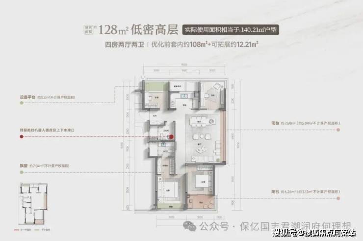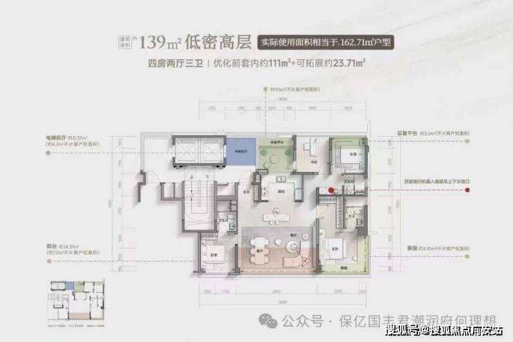 139㎡四房两厅三卫:【实现岛台空间+4房+1功能房】功能升级,实际面积相当于市面上在售160㎡使用面积