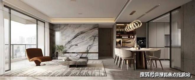 另外项目客厅背景墙不惜成本的采用岩板交付,质感更强颜值更高。