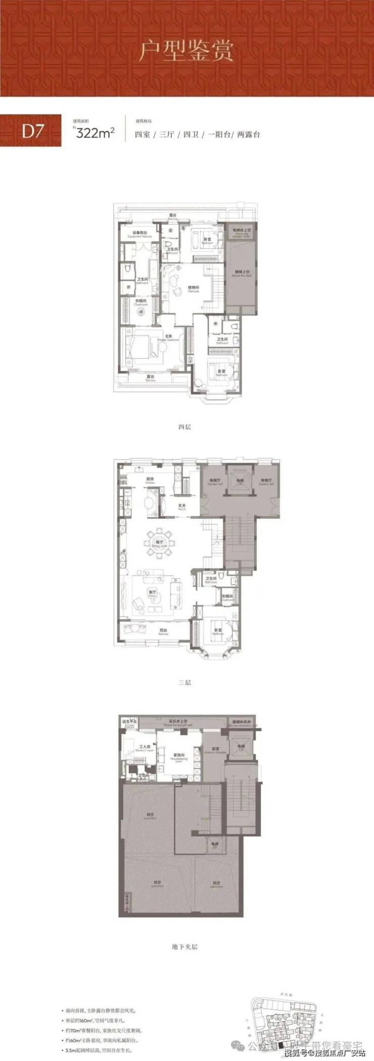 三层约3.5m、四层约3.6m层高,纵向空间感更显阔绰,舒居尺度跃然呈现。