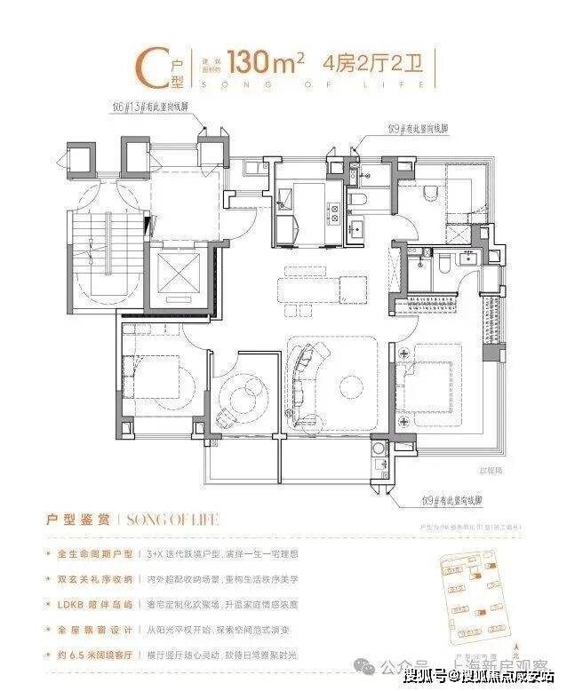 建面约130-139㎡ 4 房 2 卫:总价约480-520 万