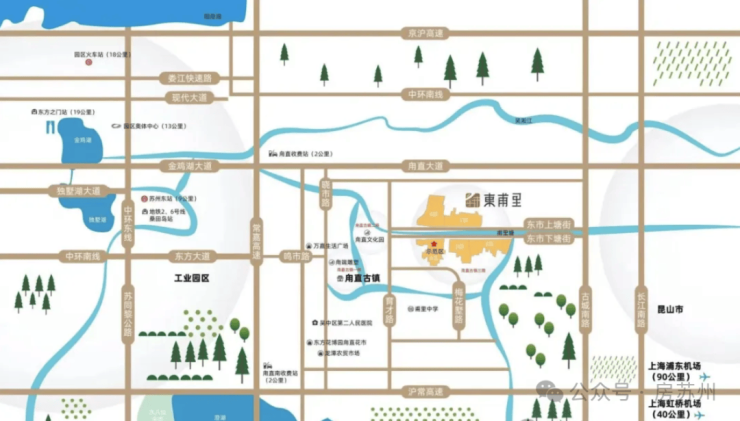 项目位于苏州东南向,中国神州水乡第一镇,甪直古镇核心区,小桥流水,诗意江南,文化底蕴深厚,人杰地灵,同时毗邻苏州工业园区,自驾可快速直达苏州地标东方之门,距甪直南、甪直两个高速路口也很近;另自驾还可达上海虹桥机场,苏南国际机场,上海浦东机场,交通便捷。
