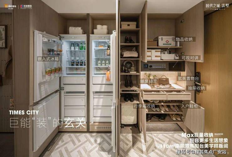 其全屋收纳系统尤为突出!U型厨房采用半开放式设计,“分层调味架、下拉篮及踢脚抽”实现高效收纳;