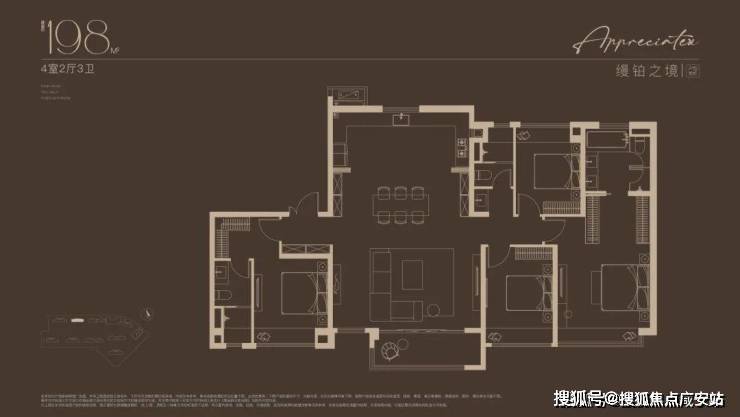 建面约198㎡4房户型,嘉定“收藏级”传世大宅!塔尖人士的挚爱之选!2梯2户的设计,子母双开门礼序入户,私密尊崇门厅,彰显尊崇生活仪式感。