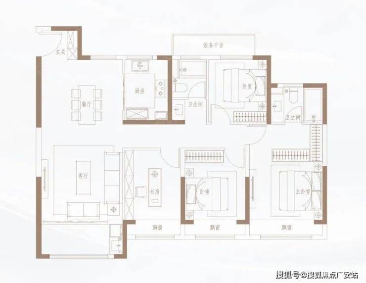 ◎南北通透的户型设计,让阳光与清风常伴身边;横厅与阳台的加持,引自然美景入室,使居者于惬意空间中肆意舒展身心。