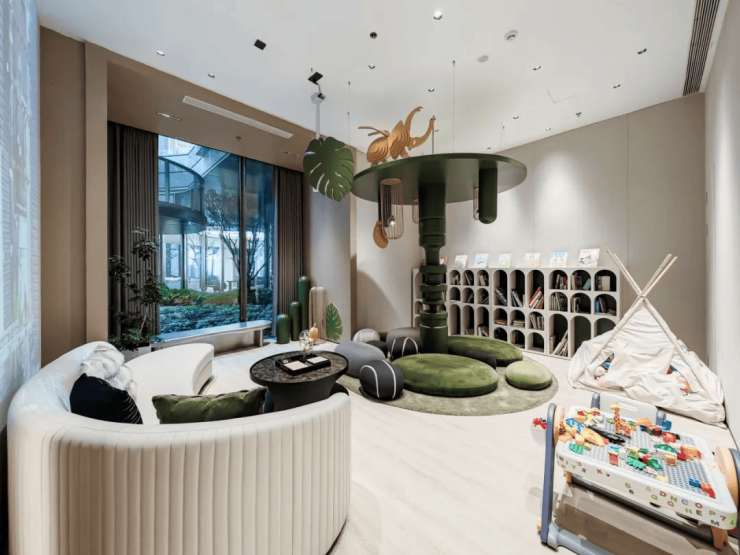 另一侧,则有四点半学堂、咖啡书吧、儿童游乐室、生鲜超市等空间,让业主不出小区就能散步、会客、赏景、遛娃、购物,可享全方位舒适的生活体验。
