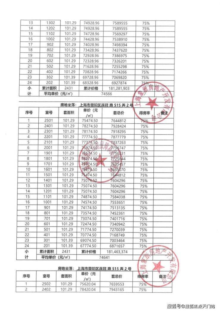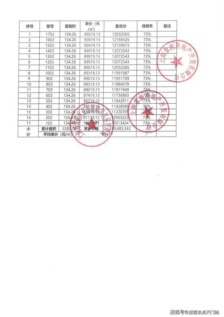 一房一价表