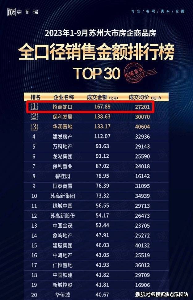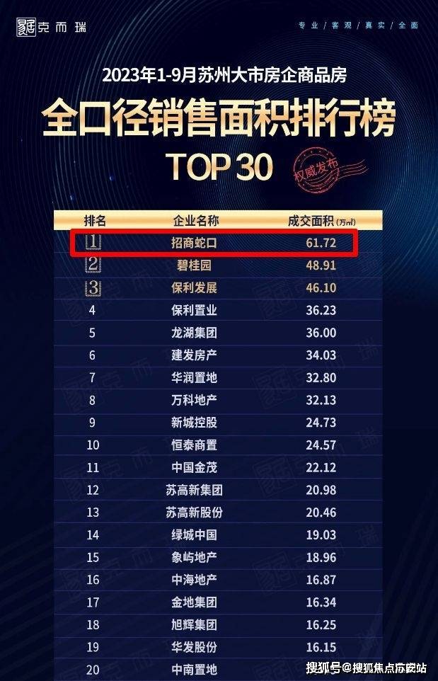 蝉联苏州大市房企销售金额TOP1!2023年1-9月苏州全口径销售金额&面积榜单双双拔得头