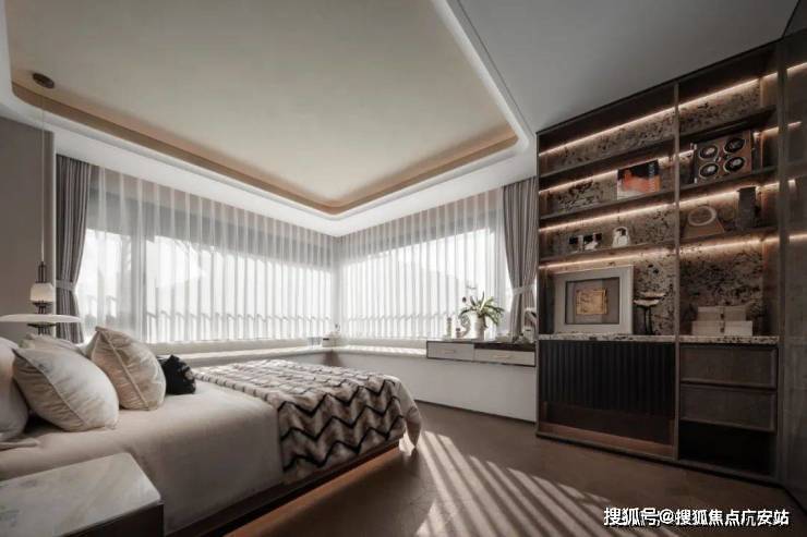 在传统的四房领域,2房朝北几乎是逃不掉的问题,但在招商中旅·观境,做到了三间卧室朝南,并且主卧拥有一个约270度的主卧无柱转角飘窗。