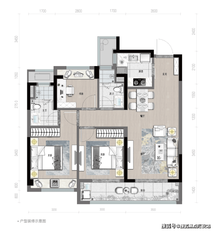 2、C户型,98㎡,3室2厅2卫。