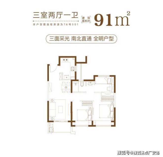 建筑面积约84-101㎡瞰景高层,方正格局,正向朝南,采光性和通风性都非常优秀;动静分离、干湿分离更是不在话下;而且推窗便能看见高尔夫绿洲,视野极为优越!