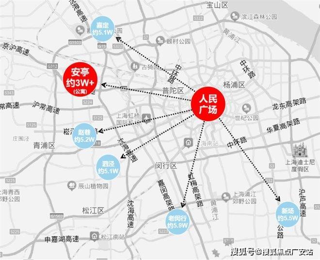 通过百度地图测距我们发现:安亭距离虹桥主城区直线距离仅约5公里,但总价仅约300万级!