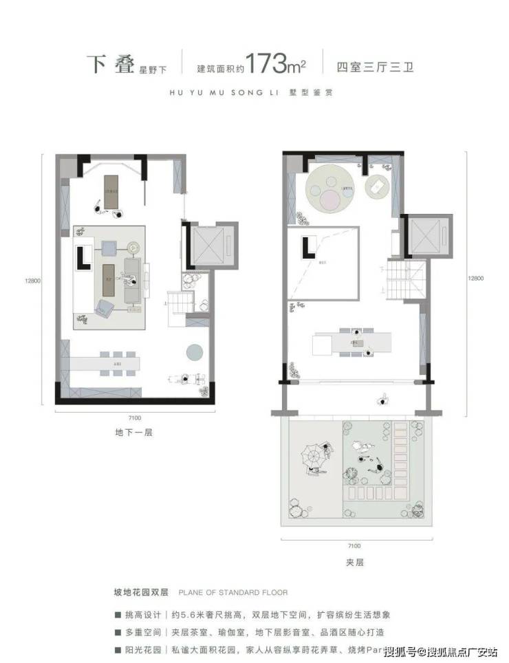 可以非常明显的看出,项目是做了双首层的概念。因为特殊的坡地处理,所以有天然的地理高差,地下层与一层自然贯通,形成两个首层,使原有“地下层”跃然平面之上,成为稀有的“阳光院落层”。