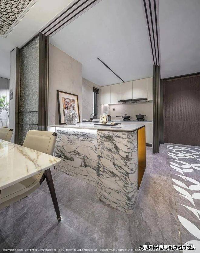 4.厨房所有墙面都采用了大面积岩板,全屋大面积墙纸交付,且无论是岩板还是墙纸都极具纹理细节,提升了全屋的质感!招商臻境售楼处:400-8657-114【售楼处热线】