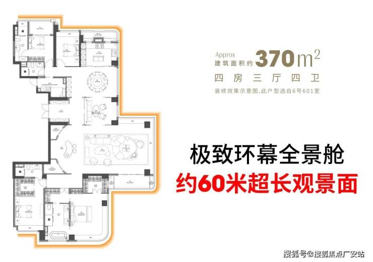另外,【典藏370】户型依托新规优势,通过多阳台设计搭配客厅、主卧的大飘窗,将实得率拉满。