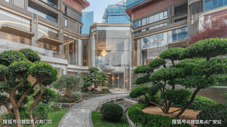 下沉式庭院里,搭配石材、水系和罗汉松,层次极为丰富,穿梭其中犹如在东南亚悠闲度假。