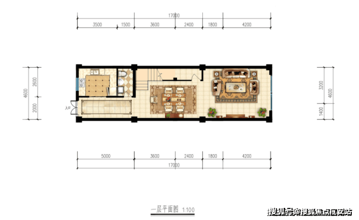 进深:一楼17米、二楼17米、三楼12米