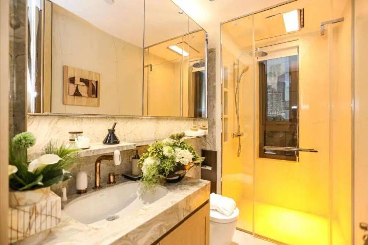 卫浴配备科勒维C美研梳洗龙头、奥普光子嫩肤美容浴霸、美妆镜箱+美妆冰箱汉斯格雅、杜拉维特,构筑了品质生活的硬件基础。