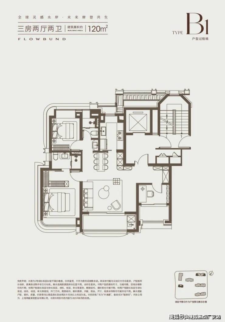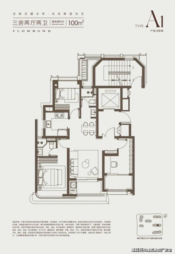 户型采用“十字序列厅”布局,南向双套房均配备独立卫浴,主卧预留衣帽间空间,三代同堂家庭居住也能互不干扰.
