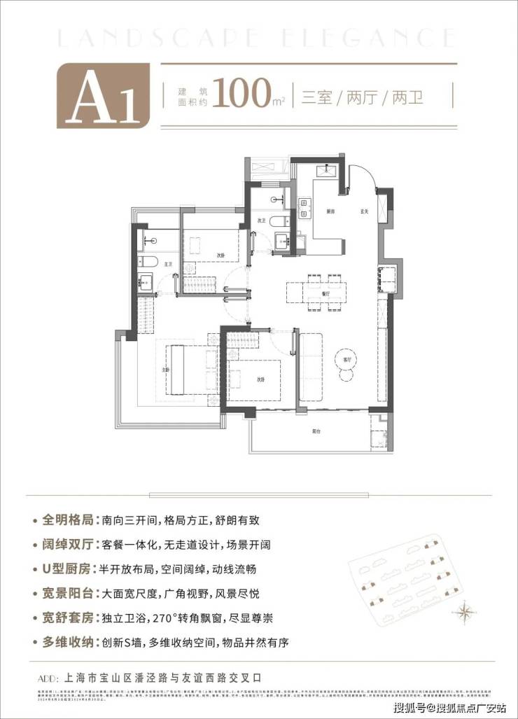 大尺度聚合方厅,为全家人打造陪伴高能的欢聚场;U型厨房,与一体化客餐厅、宽景阳台贯