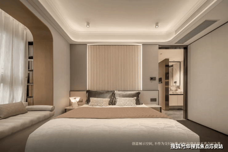 如果是边套的主卧,还会有一个约270°的转角飘窗,尺度感和实用性更上一层楼。