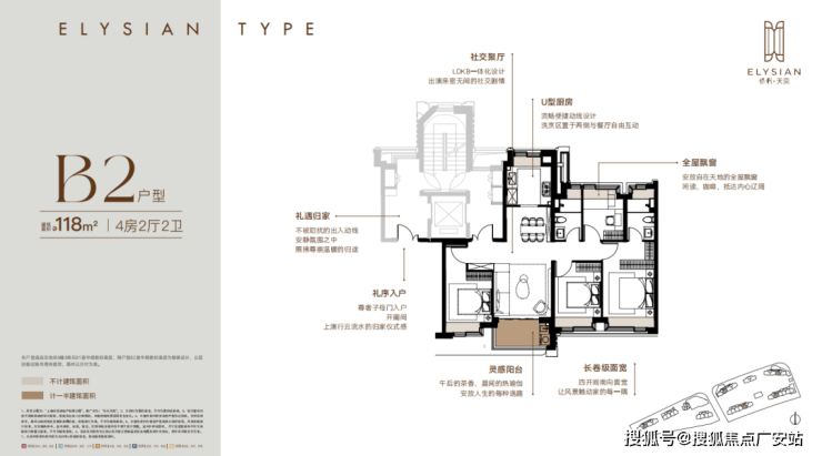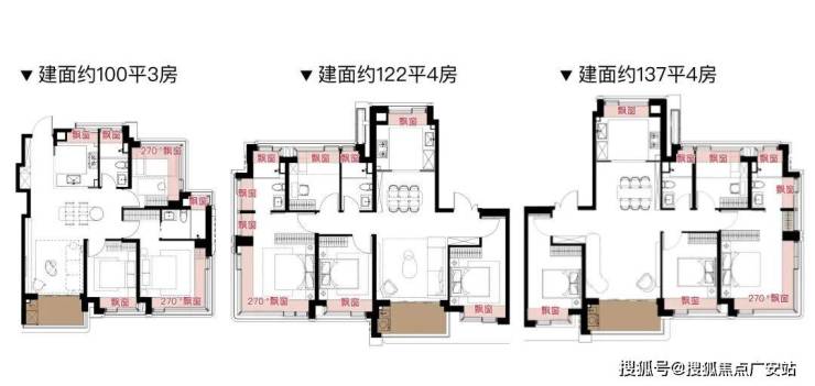 每个户型至少6个飘窗,边套更是约270°转角瞰景。