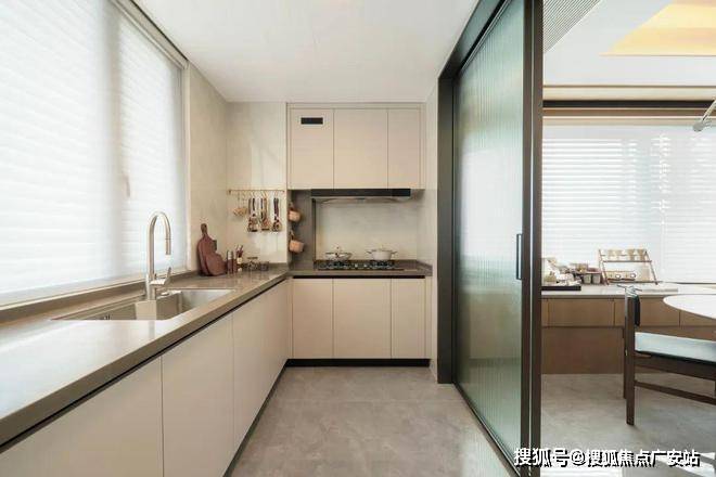 前排一线湖景楼幢,约12.4米超大面宽、四开间朝南。实体样板房的餐厅在做了双排餐边柜后,座位依然阔绰。厨房也非常自信的放入了双开门大冰箱,对喜欢屯各种生鲜食品、饮料的年轻人来说真是心头好。