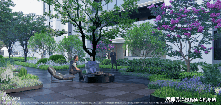 4、下沉式庭院,通过乌桕树、溪流构建一处安静的栖息之境,业主可在这里尽情放空。