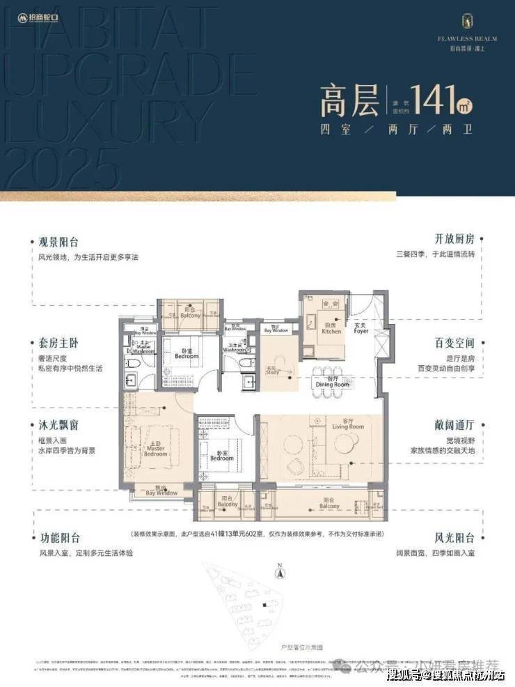 2、延伸空间拉满!主卧套房飘窗+步入式衣帽间+独立卫浴拥有2个飘窗,尊崇感与实用性拉满!三阳台+花池+4飘窗结构,有效延伸空间,实际使用空间更奢阔!