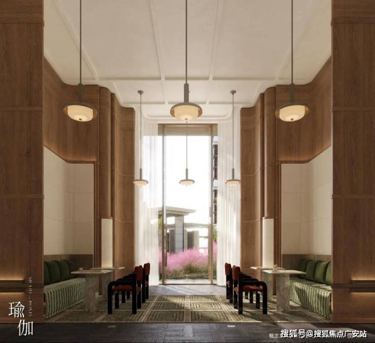 项目235新品户型方正规整,格局圆满;270°边厅设计,三面采光,五根结构柱的巧妙布局创造出极致的窗墙比与全落地玻璃幕墙,将中心园林的绿意与下沉庭院的景致最大化引入室内。