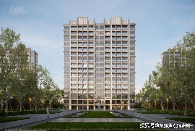 立面也很国际化,采用大面积玻璃+铝条+水包水/水包砂涂料,穿插优雅线条,让这张“脸”看起来更高级。