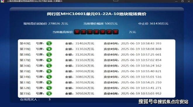 6月19日,2025年上海第五批次土拍,经过40轮竞拍,上海保利发展竞得颛桥镇MHC10601单元01-22A-10地块(即保利都汇和煦),利·都汇和煦售楼处电话:400-9692-958规划用地性质为住宅用地,出让面积4.05公顷,容积率为2。总成交价314026万元,溢价率12.95%。