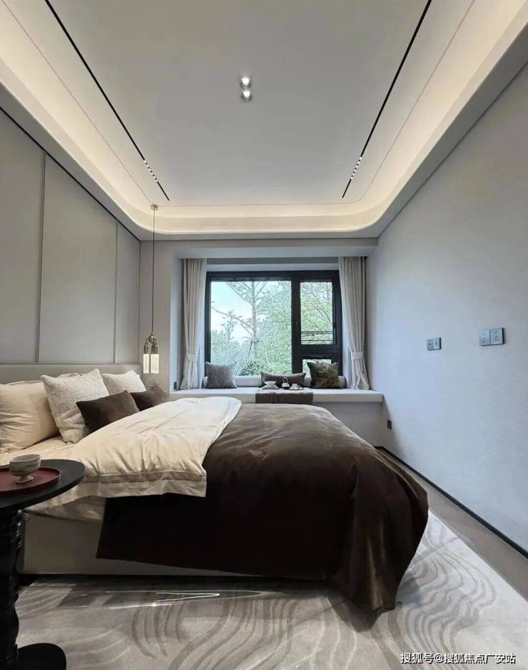 其中主卧的270°转角飘窗就有约5.7m²,通过与外立面的结合,直接做了梳妆台和储物柜,拓展了飘窗的实用性。