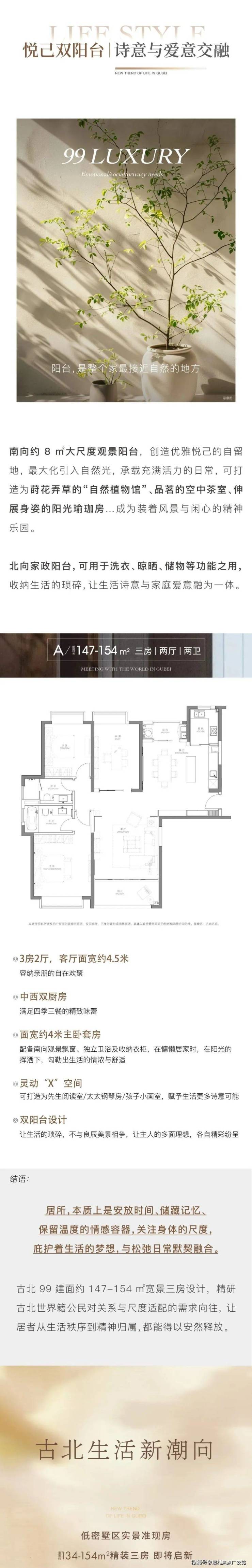 古北一直以来都是为高净值人群量身打造的高端社区,从生活配套到社区圈层都无可挑剔。虽然新房供应稀缺,但古北99即将入市的消息无疑让人眼前一亮。这个项目将推出约133-154平方米的平层和约300/419平方米的联排别墅,准现房状态让买家更加安心。