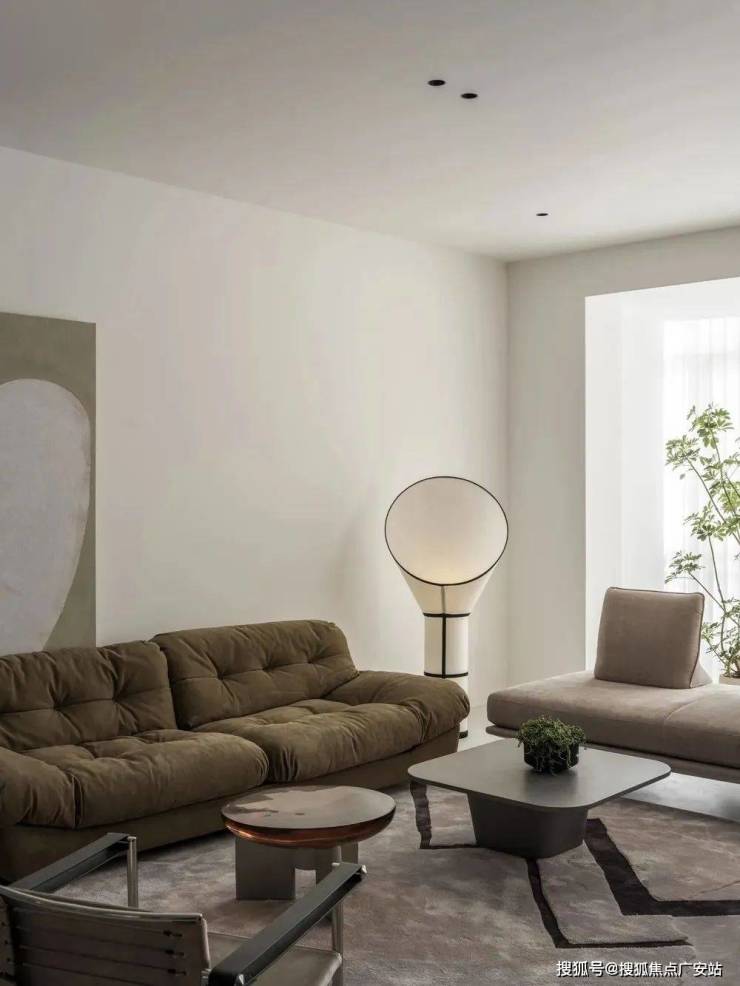 客厅采用围合式布局,BAXTER绒面多人位沙发,搭配单人沙发椅,居中两方小几可供多人使用,方便一家三代同堂一同活动,也便于待客,看剧、聊天、喝茶,作为一家人的活动场所,亲密的布局赋予彼此交流沟通时更为亲近的氛围感。