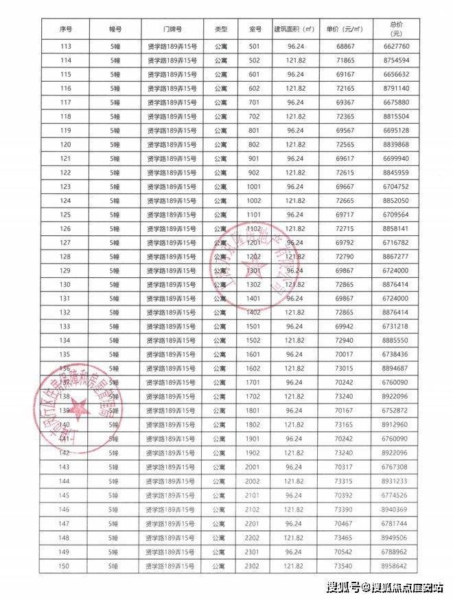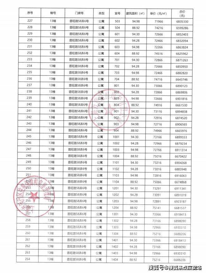 一房一价表