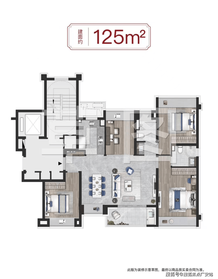 约125㎡4房2卫户型是约99㎡的升级版,四房更能保障业主的全生命周期需求。
