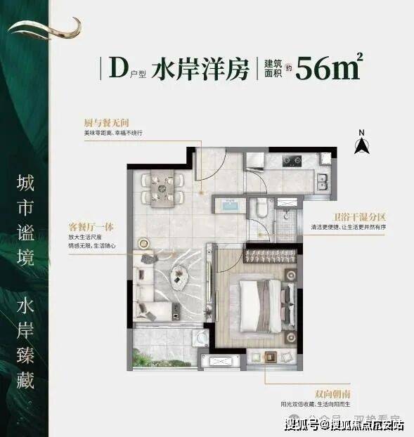 本案采用双景观轴线设计,让业主尊享臻境归家礼遇和隐归自然体验,悦享惬意生活。产品方面,建筑面积约122㎡的水岸联排别墅和56-70-93-127㎡水岸洋房产品搭配,满足不同业主居住体验需求。其中E户型和F户型水岸洋房更是采用大牌精装交付,赋能品质生活。