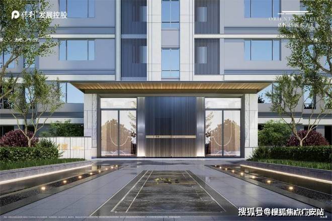 项目采用东方美学与现代建筑融合的设计理念,外立面采用昆石同色石材搭配现代铝材和高透玻璃,呈现极简东方的大美意象。社区内部以"两轴、三带、六进"空间格局打造宋代美学园林,营造四季可游的东方雅致生活场景