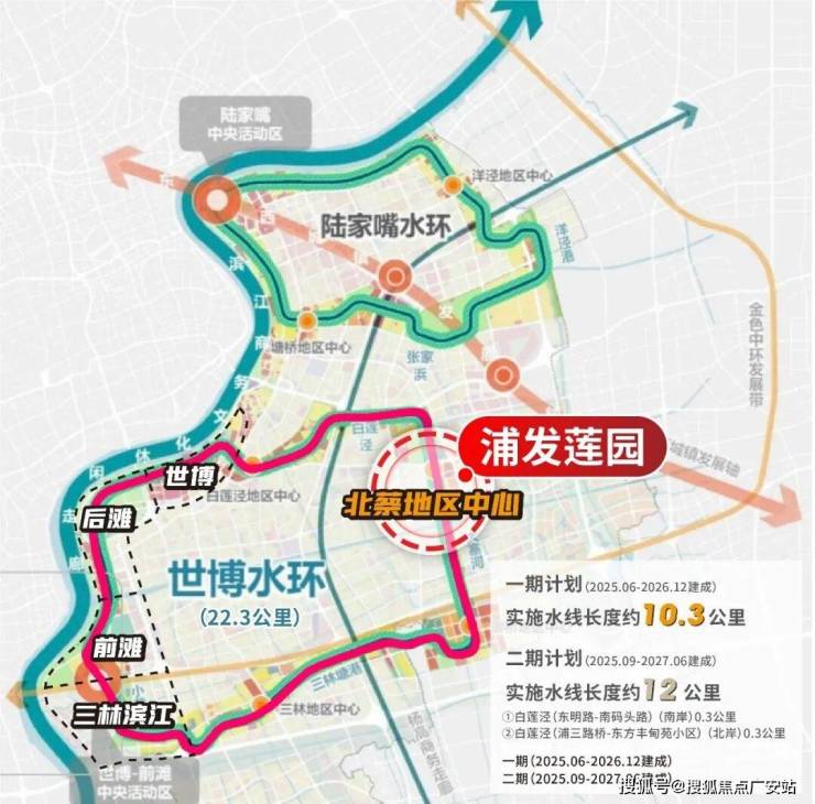 这其中,世博水环是区级层面最重要的规划,它是陆家嘴水环的全面升级版(Plus版)——规模更大、能级更高、功能更全、生态与烟火气更强,是浦东滨水开发从“1.0金融商务”迈向“2.0人民水岸”的标杆。
